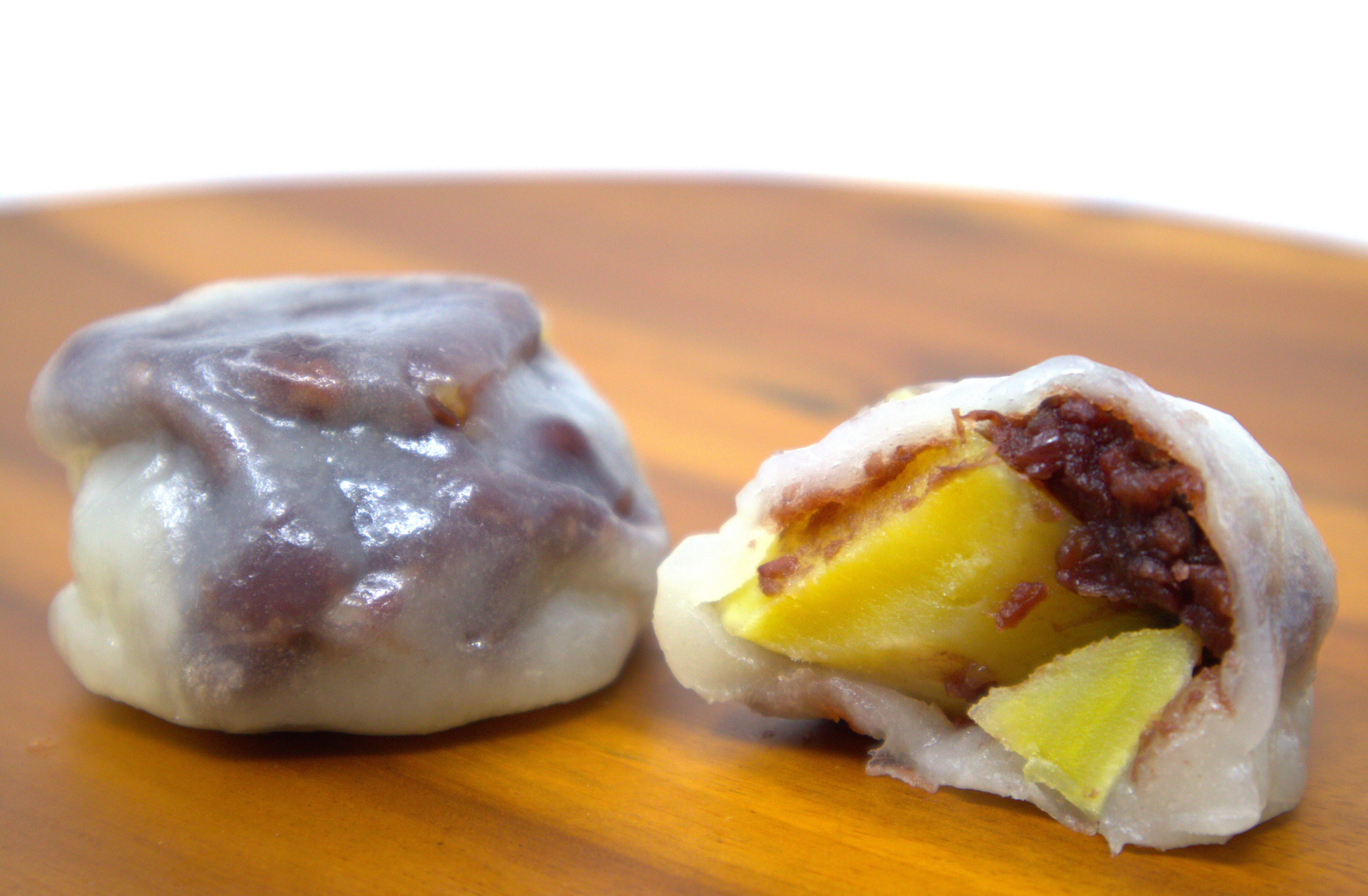 - 自家製の粒あんを包み込んだ2種類のいきなり団子、くるみ入りの味わいがアクセントに。